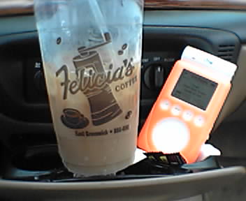![]() ![]() ![]() This morning I went to the dentist which kinda sucked. So I went out for a huge iced coffee and a piece of blueberry crumb coffee cake. Now I feel better. The coffee is too large for my cupholder though. --Lyzard on the run mob-blog |