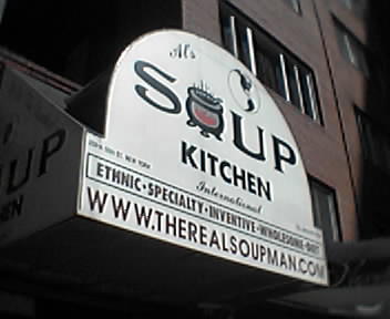 ![]() ![]() ![]() ![]() ![]() ![]() ![]() Had to get some soup at the "soup nazi." This is the guy made famous by the seinfeld show. We got the seafood corn chowder and the shrimp bisque. $11/ea for a small, but it makes for a full meal with bread & fruit. Wow, the soup is GOOD too. Highly reccomended. If you look in the last picture, you can see the man himself on the right side. Michael (wireless) IM: mwsmith70 |
