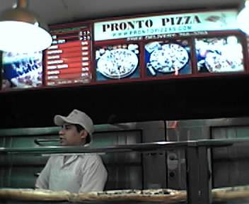 ![]() ![]() ![]() ![]() A quick stop at pronto pizza (www.prontopizza.com) we got spinach pizza and chicken pizza (which was pretty odd, basically breaded chicken nuggets on pizza.) The dough was excellent, crispy bottom and doughy top. This place is located just off of rockefeller plaza. 2 big pieces of pizza and 2 beers = $11 Michael (wireless) IM: mwsmith70 |
