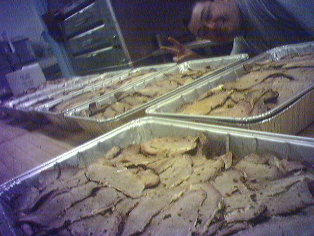 Seven pans of sliced briskett, and Paulie showing his "Billy "O" face" O-O-O.... You know what I'm talkin' about... O-O-O... Because get it? We are hosting the Billy "O" Wilson golf tournament... The O..... Yeah.. My bad. I bet Red at least gets a giggle. -Matt |