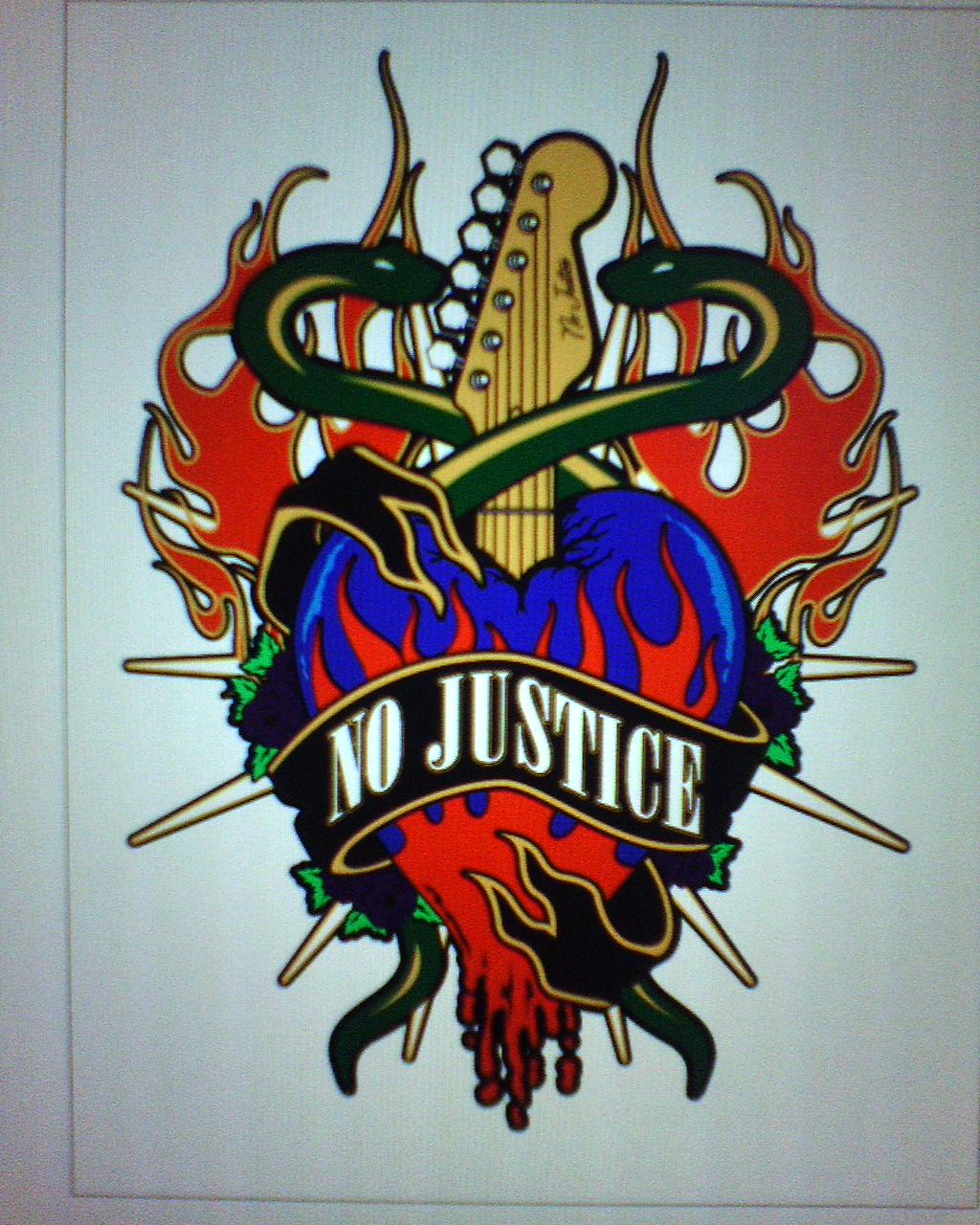Completed the new logo for No Justice. It has a more southern rock feel than the previous logo had. I did however keep the same elements of the original guitar heart, I just cleaned it up and added a few other elements. -Matt |