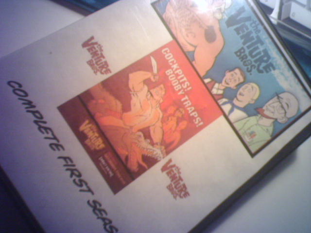 ![]() ![]() ![]() ![]() Ragan's neighbor loaned us the complete first season of The Venture Bros. On DVD that he bought off of ebay. This is about as bootleg as bootleg can get. Seems he just recorded everything off Adult Swim, built a menu and made a 2 disc package. Still good stuff. I aint bitchin'. -Matt |