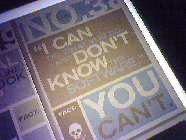 ![]() ![]() "I am sending some artwork over, and I want to make sure I send it in the right format, is PDF ok?" Well, Illustrator or Freehand would be best. "....uh ...can I convert it to that?" What program did you build the design in? "Well I didn't really build it in a program, it is something I downloaded off the internet. I have Adobe Creative Suite, can I convert it in one of those programs?" *Sigh*.... No... Just send it over and I will just have to take a look at it and go from there. "Well it needs to have some text placed around the image, do you want me to add it in one of those programs and then convert it and send it over?" *Sigh*... No... No... Just send it over and let me just go from there. -Matt |
