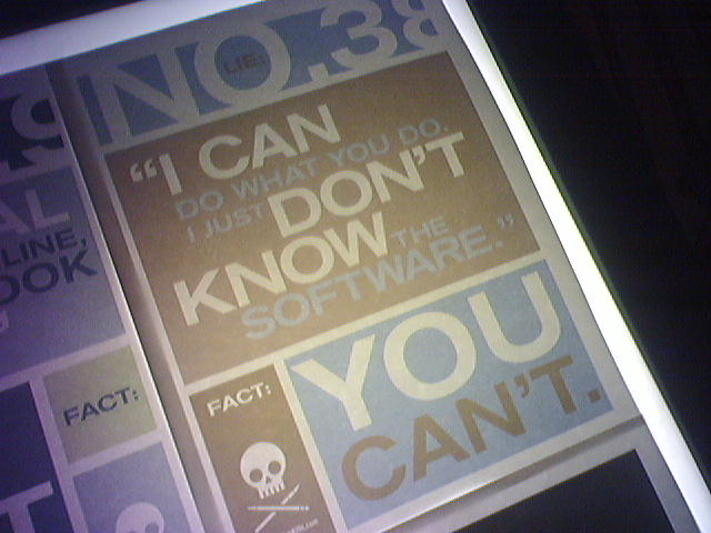 ![]() ![]() "I did the art in Photoshop, if you need it in vector format, I will simply redraw it in Illustrator"..... So by saying you will redraw it in Illustrator you mean you will open the same art and push the Live Trace button and actually make the desing WORSE. Also, while we are on the topic and name dropping what applications you have and feel like you can use, why the hell was this done in Photoshop and NOT Illustrator to begin with??? Thanks for making my Friday feel like monday dingis. Embrace the suck..... -Matt |
