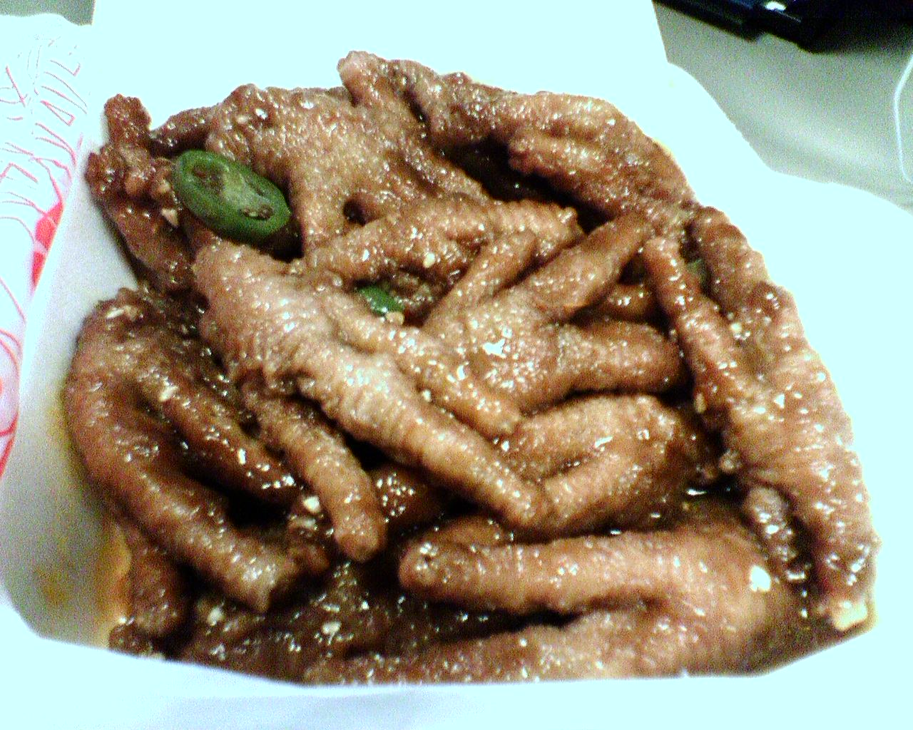 | chicken feet? Mmm good. Fri 08.10.07 12:39pm PDT #21624 |