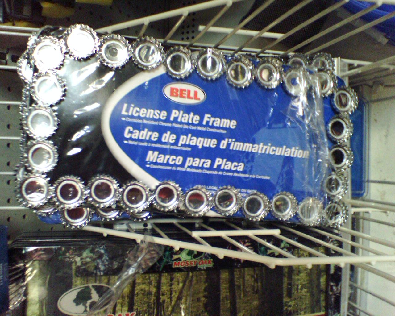 Seriously? Wal-Mart actually sells a license plate frame made out of chrome (I can only assume beer) bottle caps. The scary part is that Wal-Mart wouldn't carry these unless there are people willing to spend their hard earned cash on these and then place them on their vehicles....Oh geez. PS - Go vote. |