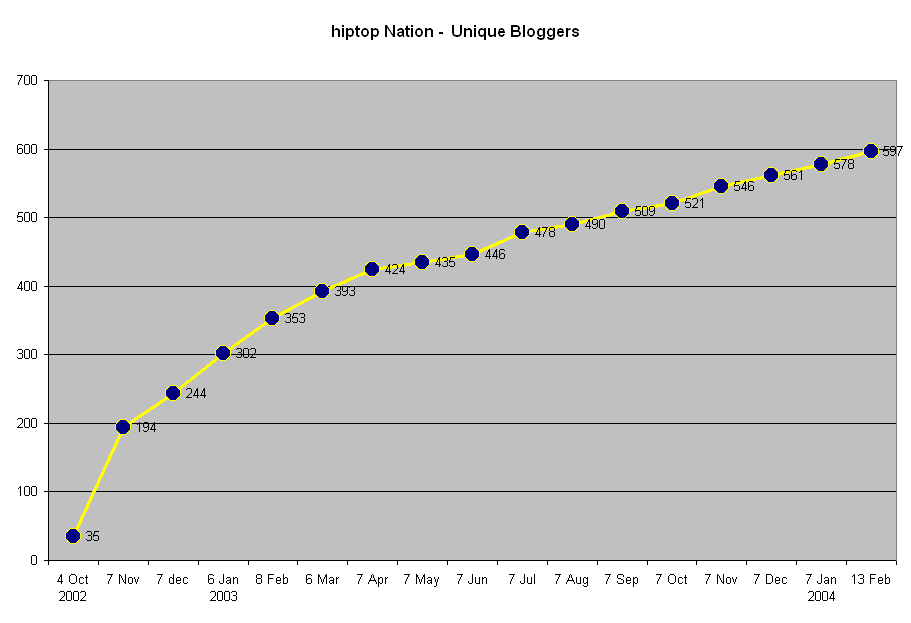 For what it is worth, here is the breakdown of pageviews by month. This doesnt take into account proxies, people looking at rss feeds, LiveJournal friends pages, etc.