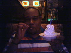 this picture is owned by the submitter. contact submitter for permission before using it in any wayMy girl took me to The Chessefactory for my birthday dinner on Sunday. They gave me this B-day ice cream, whipped cream and not-so-hot fudge concoction that wasn't really that good (I dislike whipped cream and fudge to highest degree). But it was the thought that counted. At least they sang that I was 21 and not 34. --Larry