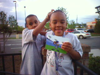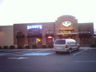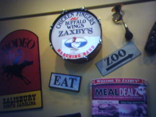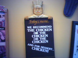 So with my girlfriend @ work, me and the boys decided to go out to eat. Lo and behold they decided on Zaxby's. Not my first choice but it's Friday so what the h##l. Living in the land of tobacco and cotton it's really starting to get weird at seeing all the places that ban smoking. The dog in #2 would convince anyone to put their smokes out. #3 shows what their one and only speciality is: chicken, chicken, chicken(we don't eat pork or red meat but I do get a little tired of the ol' yardbird). They wanted to eat outside which was fun(even though the drive-thru line wraps around the outside dining area). Now I got to get a couple of hours of naptime before I go to work. --Larry