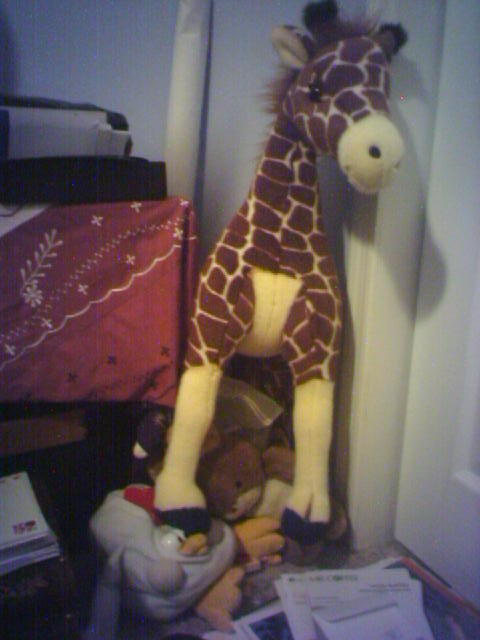 (so, as you can tell from the previous blog of killer giraffes, my photo was sideways, so one would have to either rotate their neck at an uncomfortable 90degree angle to view the pic, right click-save the pic- and rotate it in a photo editing software-and save it, or tilt the house with a house jack to view the photo correctly... but to save you from that, I have reposted the post here with the photo upright... but with one slight drawback... the original message was converted to Backwards style (technical term) when the photo was rotated) !og oidar MX og ...em ton ...swonk ylllaer ohw ...swonk ohw ....gnihtemos ro effarig eht morf 2 esoht evas og ylbaborp dluohs I tub ..... tnod I ....swonk ohw ....won retsaM aet deci eht mi kniht I os rekam aet a evah I won tub ,aet deci dna ...ittehgaps rellik sekam ehs dna ....reh evol I dna ....namow a ot ...oot deirram tog ....etunim a of enog saw I !sdnim ay golb ot kcab mi ,iH ...?naem lla ti seod tahW !effarig yrgna na yb nworhtrevo dna detanimod neeb evah aleeL dna nekcihC !hsoG yM hO -- Steve~o @(^o^)@ |