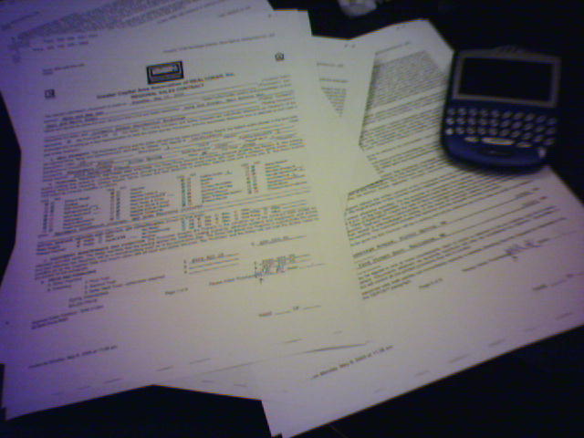 ![]() ![]() ![]() ![]() ![]() ![]() ![]() ![]() ![]() The last two days have seen a blizzard of paperwork around our second attempt to place a winning contract on a house. Since Amy is away at a conference in Seattle, dozens of pages had to faxed or scanned-to-PDF (2 & 3) to circulate between the buyers and agents of our old house and sellers and agents of our new house. For good measure, we were advised to write an illustrated soulful letter of appeal to the sellers (4) and a check for $10,000 "earnest money." The home buying market is so competitive now, I wouldn't have been surprised if the owners required us to dance naked in their front yard. The number of details to manage has been staggering. Though we ended up being the high bidder on the house, the escalation process pushed us $22,000 over the asking price. Spicing up the stress was today's brief Homeland Security Code Orange alert (7) and several URGENT (8) requests to put content on our web site during the hours it was locked down due to the re-launch. By evening, we were feeling confident that we will be owning a new house soon, AND at 8:43pm, our team successfully pushed our new web site out to the world! (9) All this before our company's Day of Service tomorrow, where 99% of the organization will be out volunteering at a variety of offsite locations. - mike lee - langley park, md |