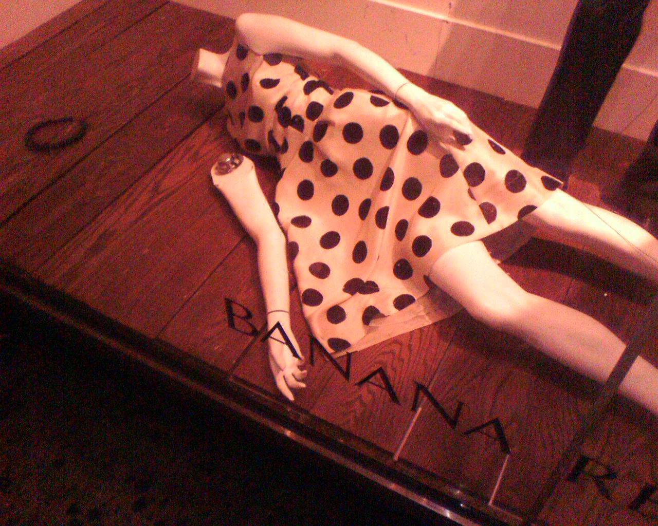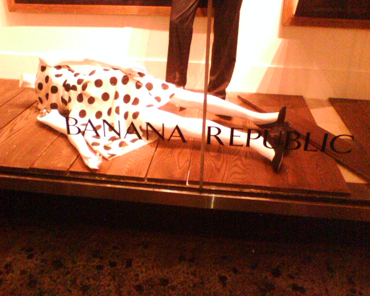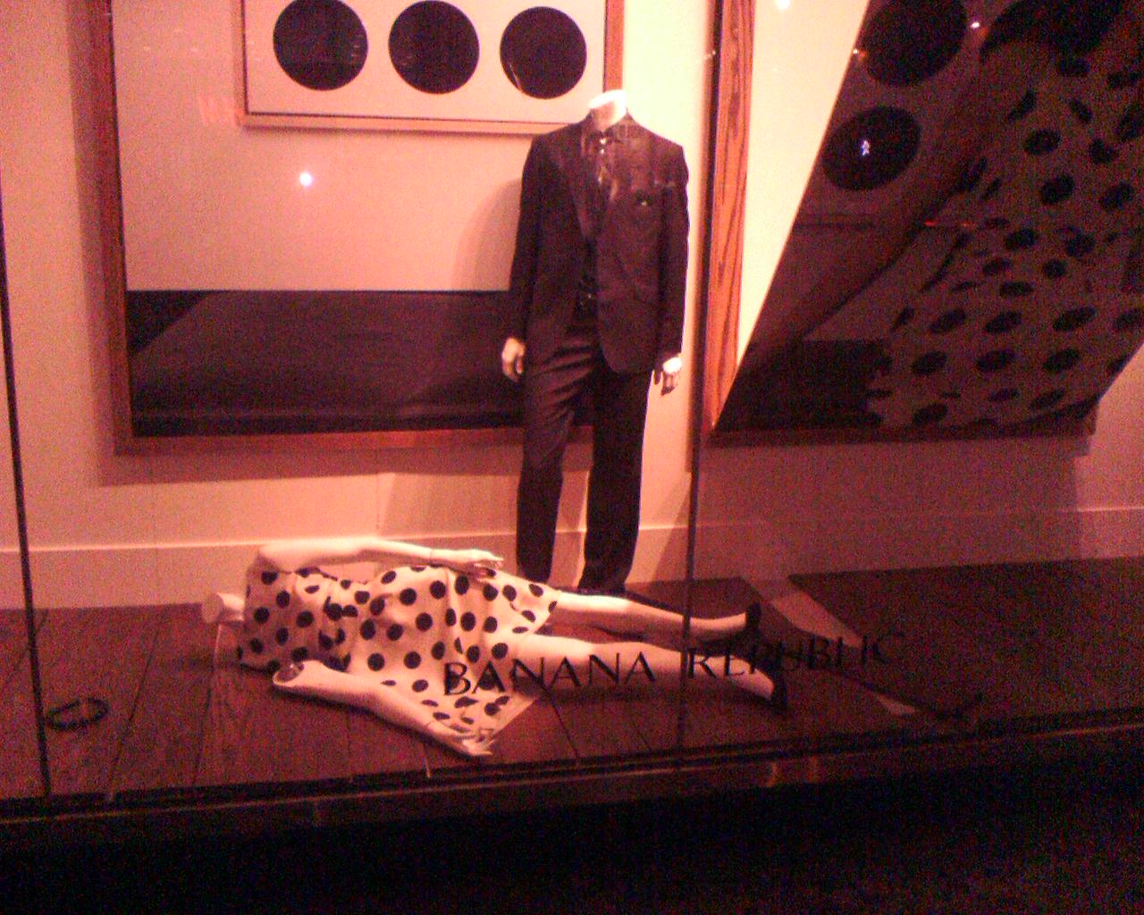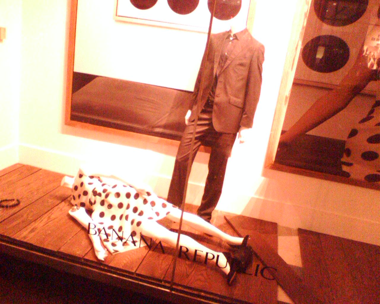 ![]() ![]() ![]() ![]() I can only hope that Bananna Republic is making a social statement with this window display. I passed by it on 58th & Lex. after my closing shift.... *I know that the picture fell, knocked the mannequin over and caused this scene, but my version of reality is certainly plausible* "I thrash in the bed of my style, seeking a comfortable position" -Milosz |