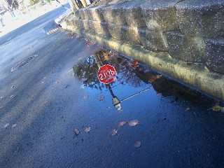 stop sign thru the puddle. looks like a portal to an alternate world of aquatic pleasures beyond your wildest dre... ok or maybe just a reflection. i should have jumped in it and went to the 4th dimension where kimmie isn't funny, beto has function of his leg again, brittany is 6 feet tall, and im african dark lol. idk dopeR than a junkies snack food |