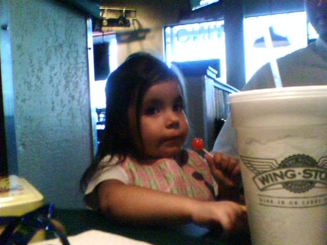 ![]() ![]() ![]() ![]() ![]() ![]() ![]() ![]() Hit Wing Stop tonight with the old team (l to r: Alan, Janet, Mari who was standing in for Yvette and a welcome addition, and Amy). Ashley brought Miss Avery (photos 3 - 6), and Mari's husband, Steve, brought little Oliviana (7 and 8). Karen got waylaid by coworkers, and somehow I managed not to get a picture of her. I blame the lollipop distraction. |