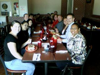 ![]() ![]() Had the work going away lunch at Malik's up off 1604 and Bandera. The only redeeming factor of the event was the company. Service was horrible. I didn't get my food until more than an hour after we arrived, got it to go, and found out it wasn't even the right thing when I got back here. *rolls eyes* But the company! The company was great. The first shot is Andrea, Melinda, Tricia, Wade, Ashley, [Kendra, Jennifer, Yvette, Karen, Cindy, Pam, Amy,] Heather, Alan, Gina, Byron, and Kathy. The kids' table housed Tim, Amy, Jaime, Tonya, and Kathy. *warm fuzzies* |