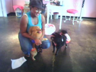 ![]() ![]() ![]() ![]() ![]() Kendra took her pomeranians, Sasha (l) and Talulah Belle (r), for their pin-up shots at Doggie Style Boutique today. You can tell I was focusing on Paris Hilton instead of the shop's owner in the second shot. She's pictured here without her Sidekick (but I always knew she was a bitch). ;) The shot of Sasha drinking shows off their little bikinis Kendra found at Target, and then I caught a couple of them both posing for the photographers, who were really talented at getting good looks out of the girls. Can't wait to see the final version. ;) |
