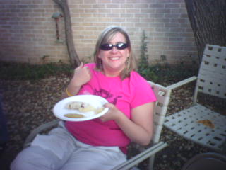 ![]() ![]() ![]() ![]() Dropped by for Ashley's going away. She's being whisked off to Google, along with Winston (and a shot of the bookthong I made her -- I'm addicted to the things). Finally, a shot of her showing off the Fiesta finery brought over by some neighbors who were way cool for being firmly in mlee's workplace demographic. |