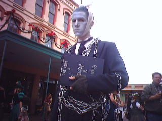 ![]() ![]() ![]() ![]() ![]() ![]() ![]() Frank and Rick break for a moment, a wonderful Buffalo Bill, a gorgeous couple that I had to get head to toe (swivel head 90 degrees CCW), Sharon who found the same costumer I did on eBay, a gorgeous peacock display, Marley's ghost, and a great couple who did their own costumes (his hat made by the costumer who did Master and Commander and all the trim imported from England). |