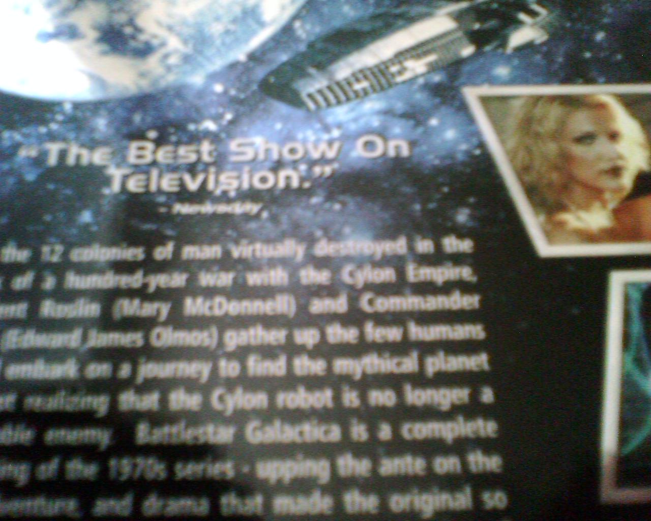 ![]() ![]() ![]() Hands down, still my favorite television show. Battlestar Galactica. My wife has never watched it so I'm exposing her to it today. I hope she likes it. If she doesn't I think a little part of me might just die. Or maybe I'll just have to divorce her. Kidding, kidding. It's not just a cool scifi show either, it's the best drama around, in my humble opinion. lonerisks.com apt404.com AIM - sorenlikesyou |