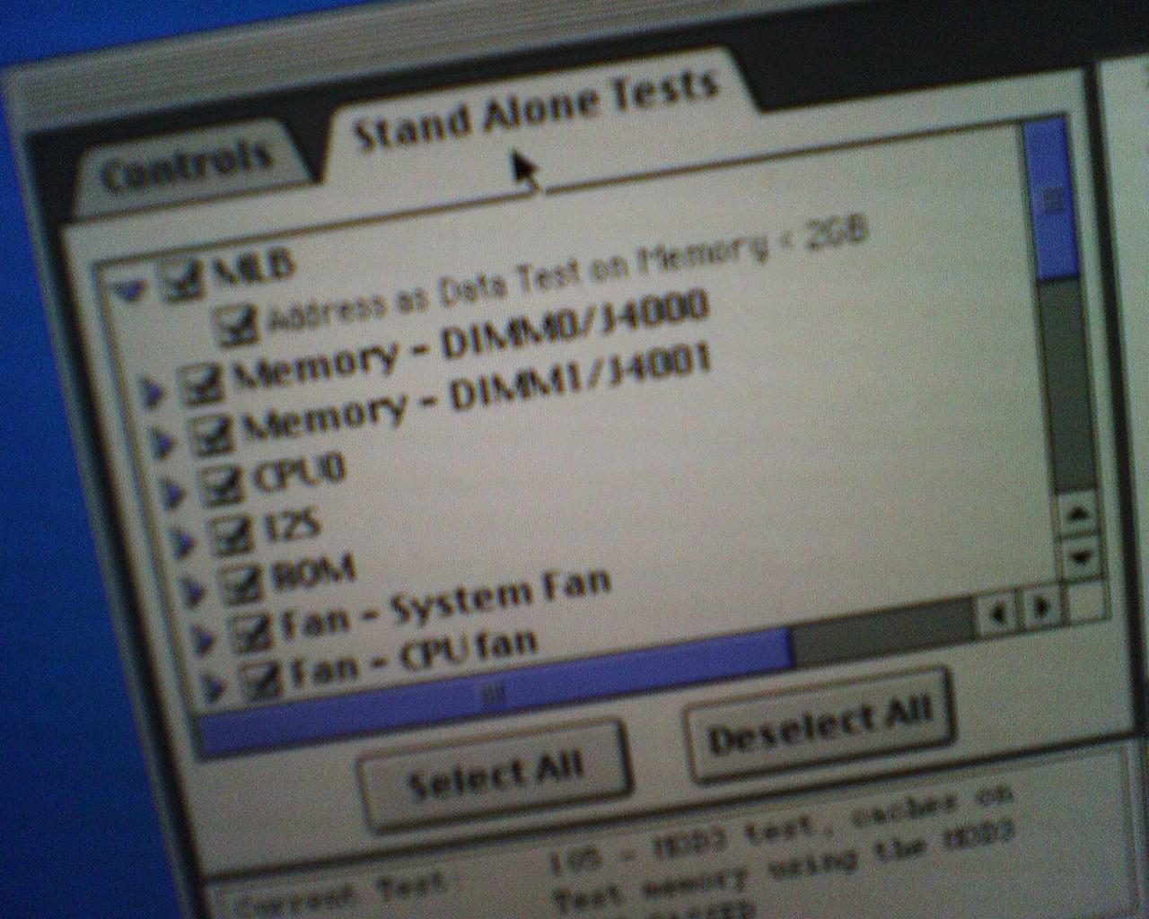 ![]() ![]() ![]() ![]() ![]() ![]() ![]() The iMac G5 1.6 (or 1.8 I forget) started to randomly just die, so I initally figured its the PSU but it seemed to be fine while in Single User Mode. So I leaned more towards my OSX install b0rked or the ram is bad. After scouring my room for the shipped Hardware Test CD I found the Apple Service Diagnostic CD on the net. Running it now to check for a hardware error. =/ -Travis ...via Hiptop |