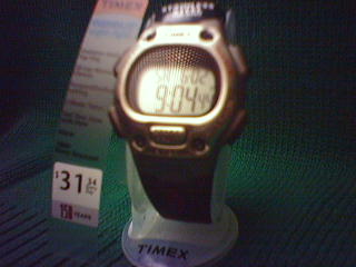 ![]() ![]() ![]() I'm a Timex watch whore. I don't have 100 or them or anything, more like 5 different ones which are in various states of unusable (dead batteries, broken bands and scratched screen). Holly picked up this Timex Ironman (Model 53341) for me, because I'm always late for things. Thanks! |