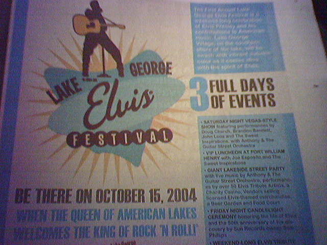 ![]() ![]() Made a couple trips upstate to check out the Lake George Elvis Festival which coincides with a noteworthy moment in American music history: The 50th anniversary of Elvis Presley's first-ever recording with Sun Records. As we all know, when you think of Elvis, you think upstate New York, not Graceland, and The King isn't really dead but rather living in the Adirondack Mountains and working a state park tour guide. |