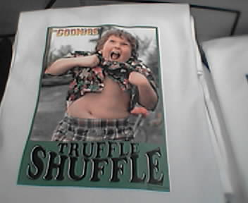 Chunk: [with potato chips in his mouth] You think your Mom's gonna notice? Mikey: What? Chunk: [more clearly] Do you think your Mom is going to notice? Notice that the statue's penis is missing. Mikey: I wonder if she'll notice. Chunk: That's what I said! Mikey: Well, of course she'll notice. She notices everything. [Chunk glued the statue's penis on upside-down] Chunk: How's this? Mikey: Oh, you idiot! You glued it on upside-down! Brandon Walsh: If God made it that way, you'd all be pissing in your faces! Chunk: Looks fine to me. |