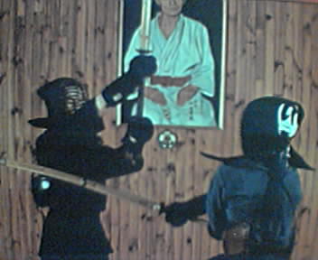 It is striking that before a contest, the competitors spreads all his equipment in front of him in an order laid down centuries ago before dressing himself in it. He then takes part in a ceremony in which decorum plays an integral part and where performance is successful only if it is played by the rules. One of the principal items of clothing is the armour (bogu) inspired by that worn by generals and high military officials of Imperial Japan. It protects efficiently the combatant's torso without hampering his movements. Under this armour a training smock is worn, a kind of wide shirt with short sleeves called keikogi. The trousers (hakama) reach to the ankles and are also very wide, that along with the tare, which is a belt made of five pieces of very stiff cloth to protect the hips, thighs, and abdomen. The shimai is a sword made four pieces of bamboo held together by a little cowl, or sakigawa, over the end of the 'blade' and a hilt (tsukagawa) at the base. |