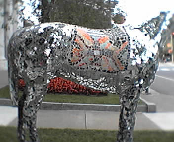 Spent the day walking around Saratoga attempting to stay dry as upstate New York got hammered with massive amounts of rain and thunderstorms. We're just two days away from the Saratoga Race Course’s 135th season and I grabbed a picture of one of the more colorful horses that line the streets of downtown. |
