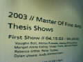 | MFA thesis show at MassArt Thu 04.24.03 3:14pm PDT #4331 |
