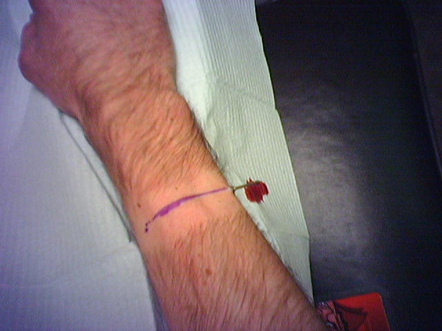 ![]() ![]() ![]() ![]() ![]() ![]() ![]() ![]() ![]() Hell City closed down and we decided since we were still in town we'd do some piercing. Carly got a unnamed ear piercing and Tony did a surface piercing on my forearm. Probably the most complex body mod since my dermal punches. It involved first shaving my arm, and then jumping two veins in my arm with the needle and then threading the tygon across my arm, but not before taking the bar and lifting up the skin a bit, and then finally screwing on the ball. The pain wasn't all that much, but the combination of that and only 3 hours of sleep and about 40 hours of working Hell City got me a little light headed. Luckily, thanks to Carly, a little fruit juice and I was all set. Now it's just a matter of healing and the hair growing back so I don't look like a freak! Note the fine Hell City merchandise I scored for working the weekend. :) |