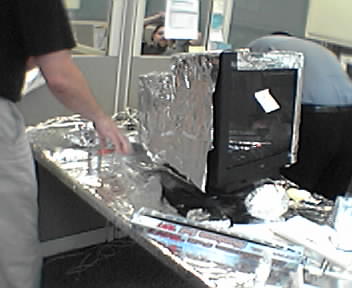 ![]() ![]() ![]() ![]() A coworker is on vacation for the week, we bought a lot of tin foil.. Here is the work in progress... -div ed.hunsinger.org + divmobile |