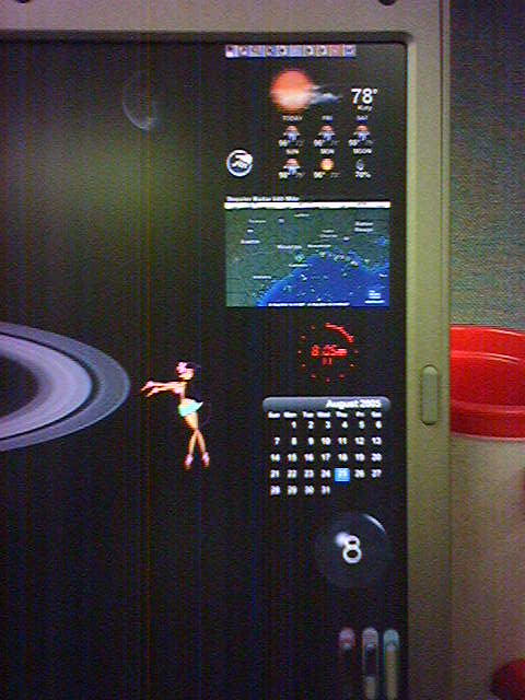 ![]() ![]() Thanks, Div for getting me hooked on this. :P I now have the weather, moon phase, a unix-like touch command, local radar, gorgy clock, hula girl (woo hoo!) calendar, magic 8 ball (absolutely necessary for my line of work), cpu load, memory load, battery charge and not pictured is another one that moves widgets from my desktop into the proper folder. And yep, I'm looking for more! Michael |