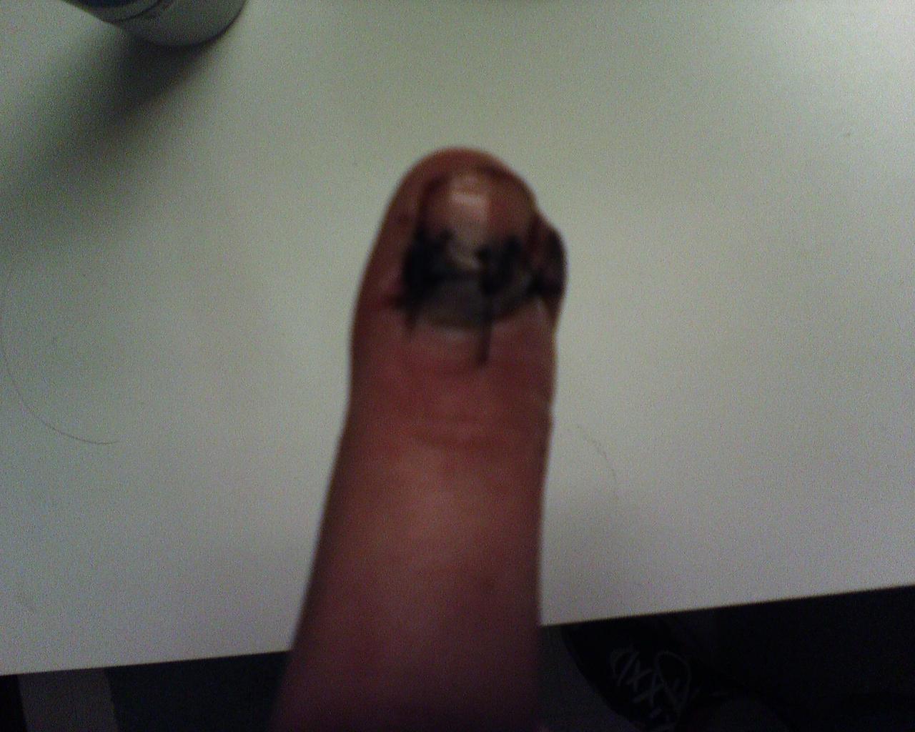 Looks a lot better than ever, and I can now slip free from the bonds of my ever so cumbersome finger splint, yet when I trimmed the nails on my other fingers I noticed one hadn't grown. Yes I might lose it, but I hope the damage to the matrix of the nail isn't severe enough for an outright lose of the the nail. Sutures were supposed to come out after ten days, and after looking at the "main" center suture, the doctor opted for five more days. -Matt |