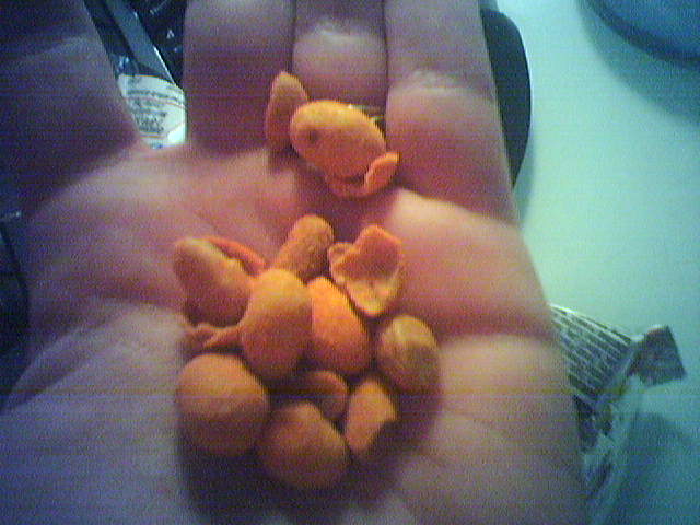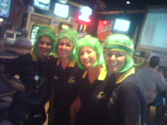 ![]() ![]() ![]() ![]() ![]() ![]() ![]() ![]() ![]() ![]() ![]() ![]() Yup. You guessed it. It's ¢.35 wings at Buffalo Wild Wings. Patrick and I are grabbing a bite and a few brews before our meeting tonight. Also pictured are the waitress crew in the bar area who apparently discovered some unused St. Patty's Day swag and transformed themselves into some sort of messed up hot pack of chick Umpa-Lumpa chicks. Earlier today I was walking through the "Gas Station" and discovered today's impulse purchase- Frito Lay's: Nobby's Crunchy Coated Peanuts - Salsa Flavored. At first I didn't know what to think. They were well.... crunchy, but with a funky taste. A few more later- eh.... It was worth the buck. -Matt |