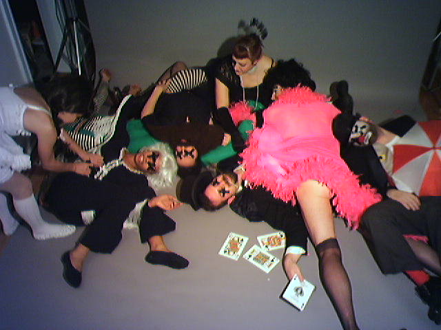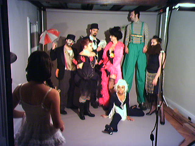 ![]() ![]() ![]() ![]() ![]() ![]() ![]() ![]() ![]() It turns out that Duff Goldman, owner of Charm City Cakes was who posed as the knife brandishing evil Uncle Tosso during today's first shoot. Duff had to dash off after his scenes to deliver cakes. A half hour later, the first of seven of Keri's friends started arriving and in the early evening darkness, our living room exploded with costumes, props and make-up. We set up for a group photo to illustrate this passage from the Trixie History: Trixie spent many horrible years under the thumb of her evil Uncle Tosso after her family was killed in a tragic Elephant Tight Rope accident. Photo captions: (1) Working on make-up (2) Sad clown (3) Adam "Monkey" Krandle as the Tall man (4) Keri "Trixie" Burneston directs (5) The family (6) Closer in on the family (7) Reviewing images in camera (8) Prepping the tragic Elephant Tight Rope accident scene (9) Cianna watched this whole production from her high chair in the kitchen and giggled a lot. No elephants were used for the accident scene because I'm going to composite the characters from these digital photo sessions using Photoshop into a diorama or background image in a style inspired by the circus photos of Edward J. Kelty and the opening of the film Moulin Rouge. We've got at least one more shoot to do, and a bunch of silent film-style title slates to layout. The image sequence will debut at Trixie Little & The Evil Hate Monkey's Valentine's Day Cabaret on February 12th here in Baltimore. I've got to get crackin' and kick some digital sawdust. - mike lee - baltimore |