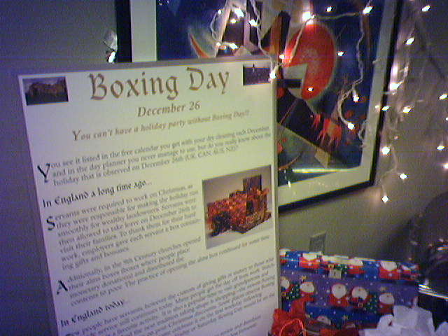 ![]() ![]() ![]() ![]() ![]() ![]() ![]() Our office's holiday party this year was a breakfast this morning. The party team burst forth with creativity and made six special panels about the major types of winter holidays. Then there was the $10 gift exchange followed by an ice cream cake for two birthdays. Two parties done, three more to visit in the next two weeks! - mike lee - washington, dc |