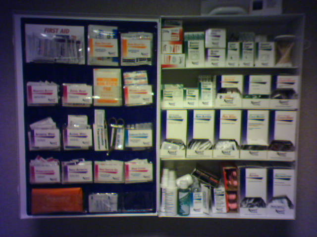 ![]() ![]() ![]() ![]() As my head cold lingers on, my wife keeps reminding me to use our office's very well stocked medicine cabinet of first aid supplies and over-the-counter drugs. I grabbed some cold/flu pills and delighted in discovering computer screen wipes. This cabinet even helps computers get better! - mike lee - washington, dc |
