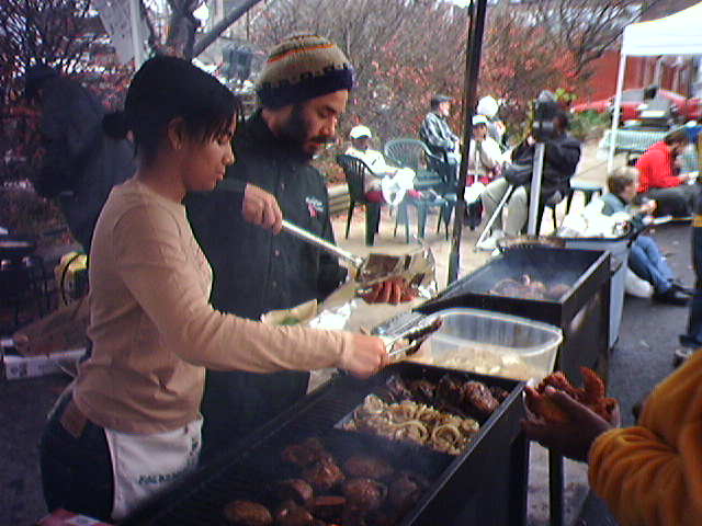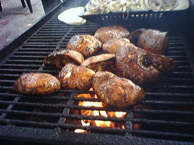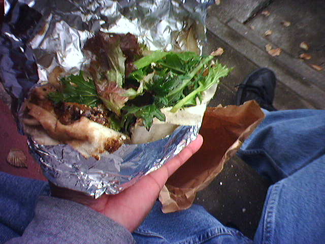 ![]() ![]() ![]() This morning, I stopped at Stan Edmister's mushroom stand at the Waverly Farmers' Market for a grilled portabello mushroom sandwich. The yummy sandwich is made of ingredients from this spring stirfry recipe plus a little hotsauce--all dropped into a pita pocket. Beyond the ingredients and good taste, the other joy of this sandwich is the aromatic smoke from the grill that surrounds you as you watch your sandwich being made. - mike lee - baltimore |