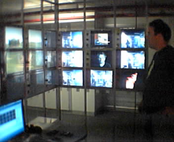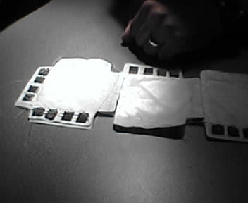 ![]() ![]() ![]() ![]() ![]() Here are a few photos that have been sitting in my Sidekick gallery from my last visit to the Lab that I should post before I fly there tomorrow again. The photos are of V. Michael Bove, Jr., principal investigator of the Object Based Media Group, and grad student Arnaud Pilpre demonstrating Smart Architectural Surfaces (SAS) to me. SAS is a year-old prototype that functions like a modular video wall on steroids. Any number of sensor-enhanced video panels are snapped together on wall mounts which provide power. Each panel has it's own computer processor, WiFi-card and one or more sensors including a video camera, ultrasonic proximity sensor and speaker. The panels cost about $600 each and have the guts of a PocketPC inside. One of the first applications is a teleconferencing system that connects the Media Lab in Cambridge, MA to the University of Korea where there is a similar cluster of wall panels. Each panel module scans the network for sister panels that are adjacent to it to know their physical location and make use of any special sensors. In a teleconference, face recognition software acquires a participant's face and passes the video image from panel to panel as they walk past the wall and all this is shared with the sister wall on the other side of the world in Korea. Michael's group is using SAS as a platform to explore modular "ecosystems" of smart devices, and hopes to cover all the walls of a room with these panels. I was also shown part of the Build Your Own Bag project. Like the smart wall panels, these experimental 4" square fabric pouches contain smart processors and special functional components that are electrically connected at the edges by patches of conductive velcro that carry data and power. Start with a fabric tile that has battery and stick it to another that has a central processor and the device comes alive. As you add other tiles, they are all registered with each other and work together where applicable. Tile modules can have lights, speakers, sensors, microphones and anything else imaginable create an interactive, reconfigurable contruction. What the team is currently showing is an interactive handbag made of the smart fabric tiles. Not surprisingly, Michael is now head of the recently formed CELab, a Media Lab research consortium formed to work with consumer electronics companies to implement some of these ideas. PC World has a good interview with Michael. - mike lee - posting from a traffic jam in delaware that is the resulted from the closing of 295 to philly |