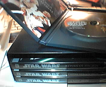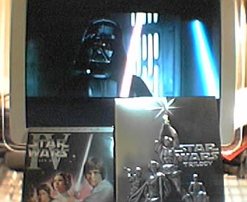 ![]() ![]() ![]() Well, the original Star Wars Trilogy, the most highly anticipated DVDs ever, have finally arrived on my desk today from Amazon. The package was just shrinkwrapped with a promo card around the silver slipcase holding the four DVDs. I just had to pick off the loogie of glue under the card and was pleasantly surprised that I didn't have to unwrap each of the cases and peel off security tape. At first glance, A New Hope looks and sounds outstanding. Watching these movies again will bring back good memories of lining up back in 1977 to see the movie umpteen times, and of the years after that I worked as a projectionist and theater manager. And to contrast the boxed set, I also have The Best of Triumph the Insult Comic Dog, which has the classic gut-bustingly funny Attack of the Nerds. - mike lee - baltimore |