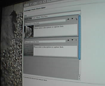 ![]() ![]() ![]() ![]() Marc Schwartz, another PLWer, is working on a Java applet that automatically detects the images in the memory of any digital camera and downloads them. This functionality is already in Windows XP and Mac OS X, but the advantage to a Java applet is that it works across the major computer platforms and installs itself via the Internet. An applet like this would make uploading images to a web site from a cybercafe very easy. - mike lee - cambridge |