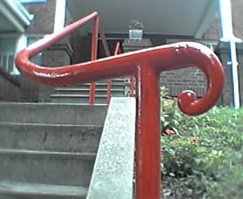 While I was out, my wife and her sisters put a fresh coat of paint on the handrail in front of the house. Pretty! - mike lee - blogging every half hour for 24 hours for project blog 2004 |