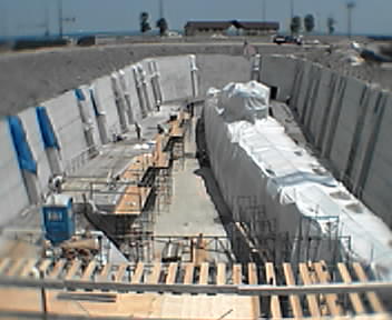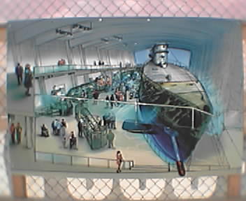 ![]() ![]() ![]() ![]() ![]() I'm on a viewing platform overlooking the Museum of Science and Industry's new "U-505 Experience" under contruction. The U-505 is a German submarine (in the first photo wrapped in white tarps due to rain) captured in 1944 that is being restored with a new 35,000 square foot underground museum being built around it. The artist's concept looks impressive. A staffer says the new extension to the museum will open spring 2005. - mike lee - chicago |