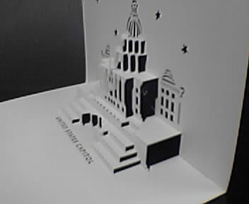 ![]() ![]() ![]() ![]() I had lunch today at the National Building Museum which gave me a chance to shoot another fisheye photo. While there, I discovered that the annual Festival of Origami Architecture is tomorrow from 10am - 4:30pm. Alas, I already made plans and once again can't go. Origami architecture is the art of crafting pop-up sculptures out of a single piece of paper with only cuts and folds. The patterns are designed from scratch, and the most complex can take years of thinking. The last photo shows a greeting card that opens to reveal a dimensional model of the U.S. Capitol. This particular example is mass-produced by a laser cutter, but true origami artists cut their pieces by hand. You're not likely to make it to this festival, but you can download free PDF patterns from the Baud & Bui web site to try on your own. And noting to myself: Symphony In Steel - Ironworkers and the Walt Disney Concert Hall is showing through August 22. - mike lee - washington, dc |