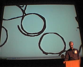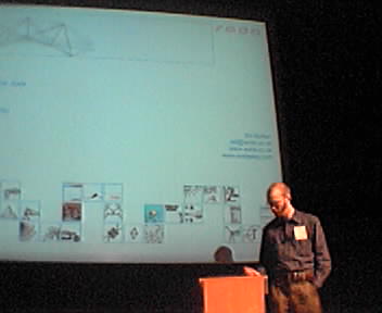 ![]() ![]() ![]() Ed Burton, inventor of the Sodaplay Construction Set was having AV problems before his talk this morning due not having a special adapter for his tablet PC. I had to smile when he was surrounded by three MIT professors, a grad student, the director of the Media Lab, and two conference staffers all trying different solutions. The audience took a 10 minute break during which time the problem was solved. Ed went on to give an excellent talk. - mike lee - cambridge |