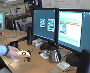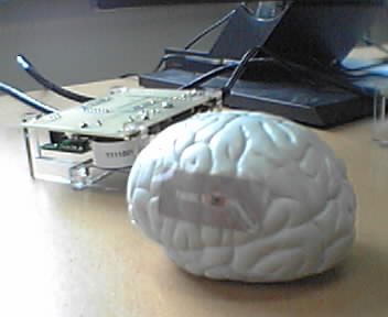 ![]() ![]() ![]() ![]() ![]() ![]() ![]() MIT research scientist Henry Holtzman, working with the boys in the Physical Language Workshop, gave a hands-on workshop on RFID or Radio Frequency IDentification technology this morning (pic 1). RFID uses stickers/tags (pic 2) with unique ID numbers stored in a chip with an antenna through which external readers can retrieve the ID. These tags cost about a dollar each, and less in large quantities. Walmart is gearing up to use 8 billion of these tags a year to track shipping palettes and individual boxes of product. The FDA wants to tag every drug bottle to control theft and counterfitting. Henry and the boys custom built a low-cost reader device (pic 3) to use in experiments in the lab. The reader consists of about $125 worth of mostly off-the-shelf parts that can read an ID from a tag at close range, beep to confirm, and transmit the data via an ethernet connection to a web server port. In the hands-on session, we picked a toy from a box--mine was a foam rubber brain--to affix a tag (pic 4). At the first workstation, we photographed our object with a web cam which posted the resulting image to the Treehouse collaboration system which has a photo image manager (pic 5). We typed in a name for our image. In another interface, we opened our image and waved the tagged object over the reader to assign the unique ID to the named image. At the last station (pic 6), you could wave the tagged objects over one to three readers to have the photos retrieved. The names of the photos were then sent as queries to ConceptNet, a database of over 680,000 common sense facts about everyday life, which returned a statement. The words "kleenex," "brain," and "toy car" returned: "Man tire seat metal key leather heading." OK, well the idea was cool anyway. Best of all, I got to walk out of the lab with a complete kit (pic 7) of our own reader and tags to play with. We bugged out right after the closing remarks at 1pm to catch an earlier flight to beat the approaching snow storm. I'm resting my brain at home now. - mike lee - baltimore |