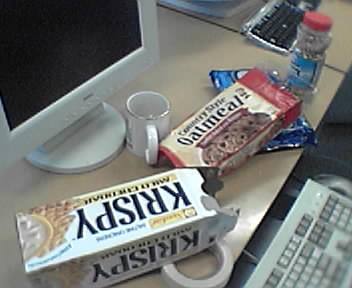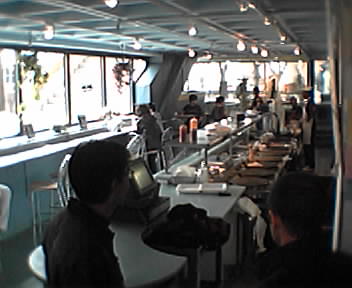 ![]() ![]() ![]() ![]() ![]() Here on the third floor of the Media Lab in the student area of the Physical Language Workshop, I'm relaxing on a big leather couch by the iMac cluster video wall. The couch is surrounded by munchies which are no doubt fuel for many recent late-nighters. Carlos just walked me around the floor and showed me the Filterfresh machine. The students call this hell week because it's mid-term exam time, and they are preparing demos for the lab's corporate and institutional sponsors' open house. Next, the team has to rearrange the computer desks to accomodate tomorrow's visitors. - mike lee - cambridge |