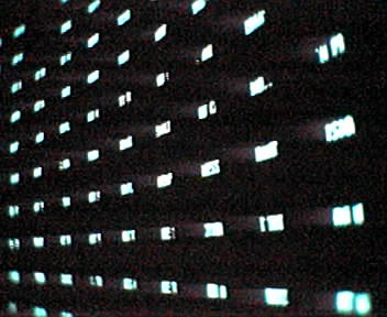 ![]() ![]() ![]() ![]() ![]() While the lab boys were re-arranging their workspace, I went downstairs to the first floor art gallery to take in Son et Lumière, a show of multimedia installations. Of the six works displayed, I was most taken with Listening Post, a 30-foot diagonal, 21x11 array of digital text display modules that derives its visuals and audio from a continuous sampling of online discussion board text. Segments of the seventeen-minute experience feel like the green shower of glyphs in the opening credits of the Matrix movies. Follow the link above for background information and high-qulaity stills and video. - mike lee - |