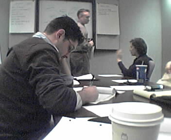 ![]() ![]() ![]() For the last two days, our web team had marketing consultants and a tech trainer in residence, and conducted six two-hour user testing sessions on a bunch of prototype web pages. All this on top of our normal workload. Hopefully the daze will lift after my 8am meeting this morning. - mike lee - washington, dc |